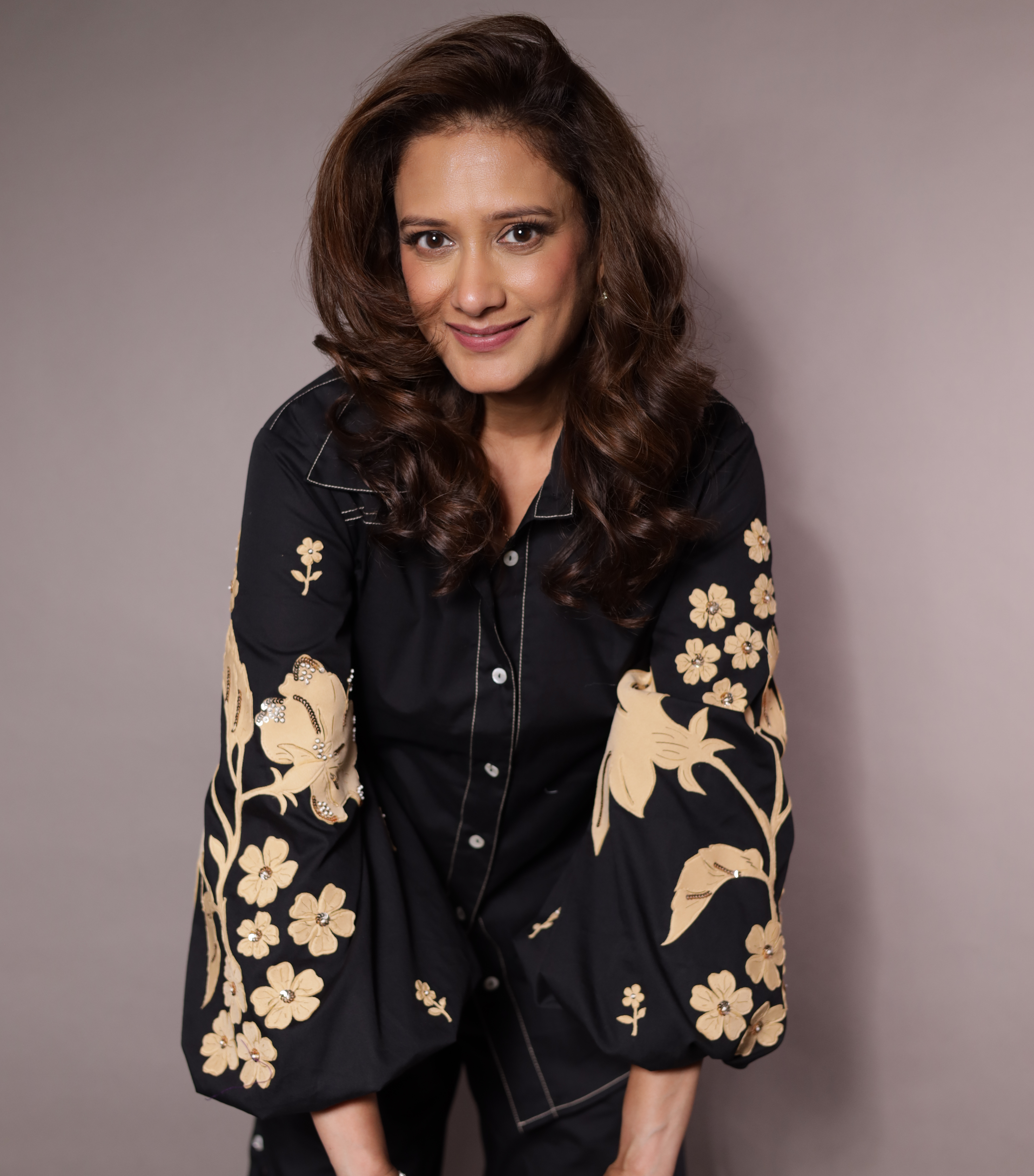 Description: A beige hibiscus flower balloon top with button down straight pants. A signature style which truly defines our brand's USP.