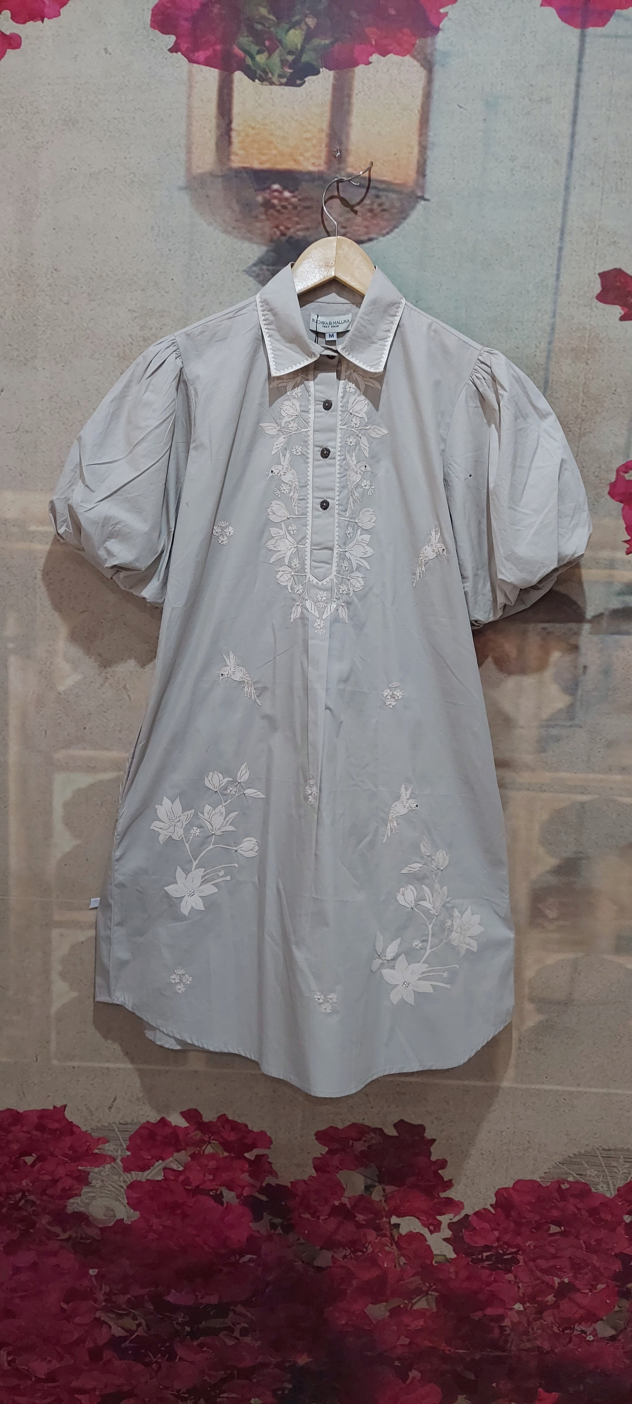 EMBER PETAL DRESS WITH WHITE EMBROIDERY